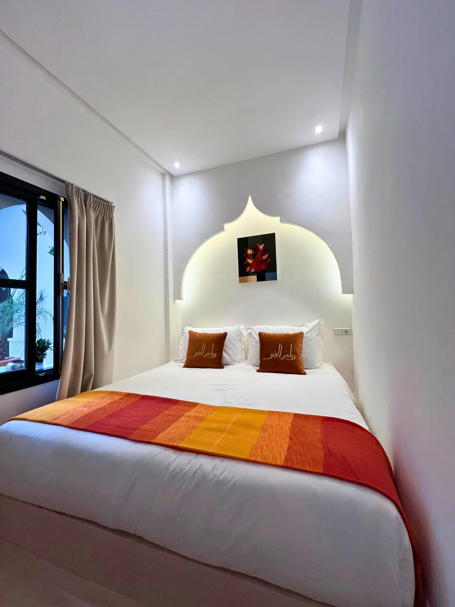Découvrez la Chambre Mohcine, un espace spacieux et accueillant, parfait pour une escapade reposante au cœur du Riad El Khaeir. Offrant un cadre intime et authentique, cette chambre allie le charme traditionnel marocain au confort moderne, pour un séjour mémorable à Marrakech.