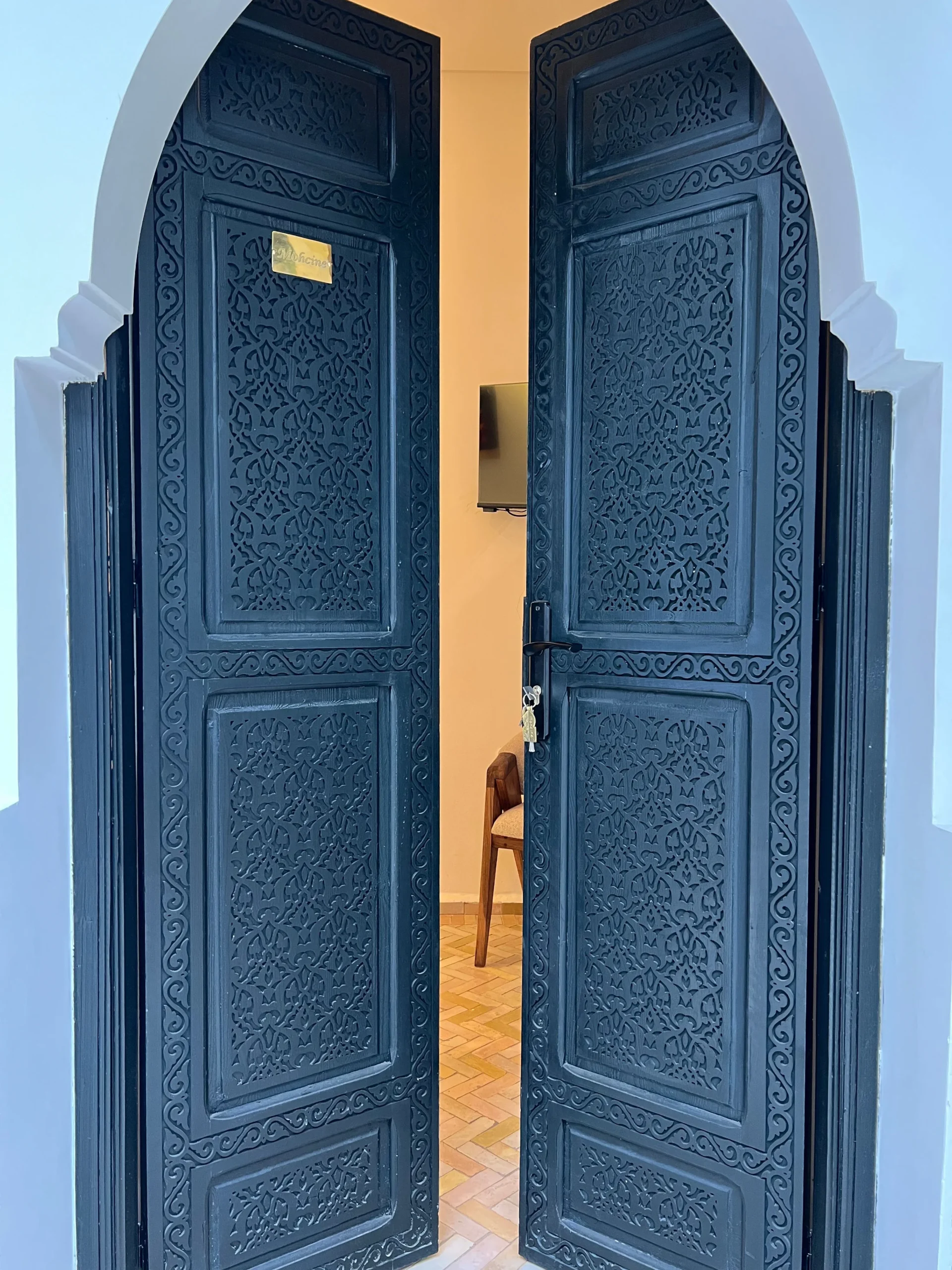 Nid douillet au cœur du riad, la Chambre Secrète vous enveloppe d’une atmosphère feutrée et chaleureuse. Avec son confort haut de gamme et son charme intimiste, c’est le refuge parfait pour une escapade paisible à Marrakech. Un cocon idéal pour se ressourcer.